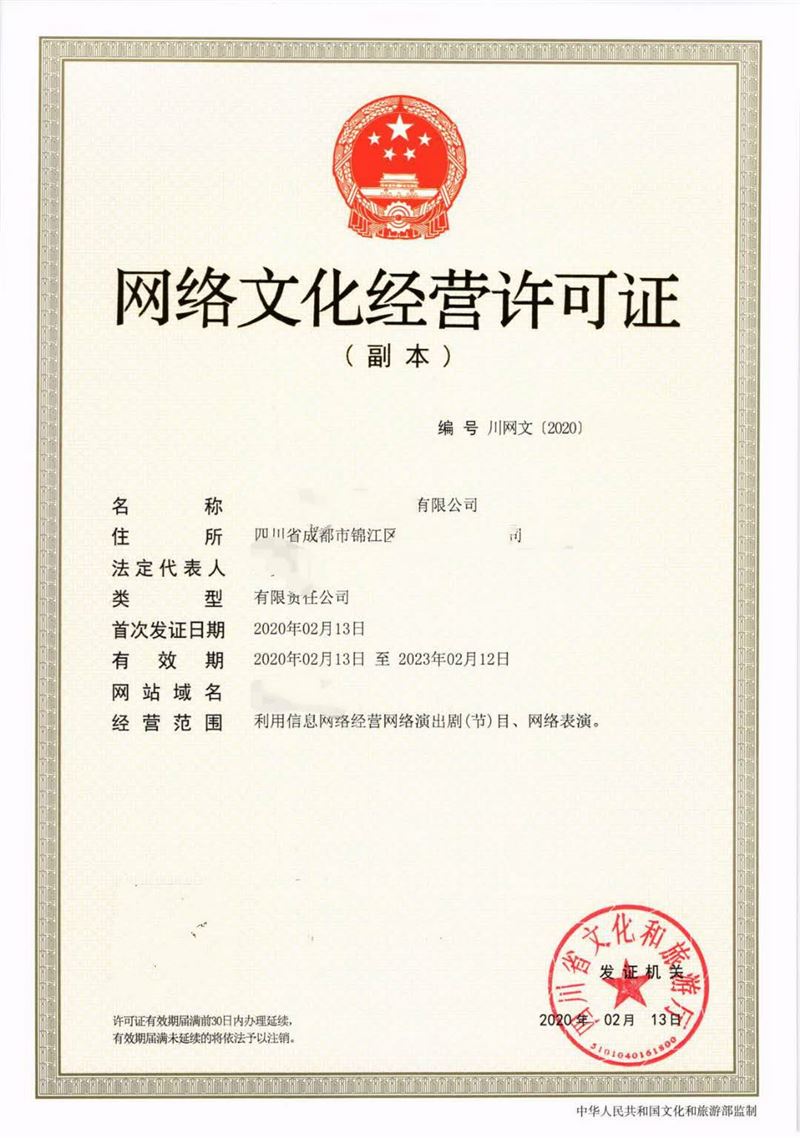 办理网络文化许可证成都市:青羊区,金牛区,成华区,锦江区,武侯区,高新区,新都区,郫都区,新津区,双流区,温江区,天府新区,龙泉驿区,青白江区,大邑县,蒲江县,金堂县,邛崃市,彭州市,简阳市,崇州市,都江堰市7 8 分 类 网。